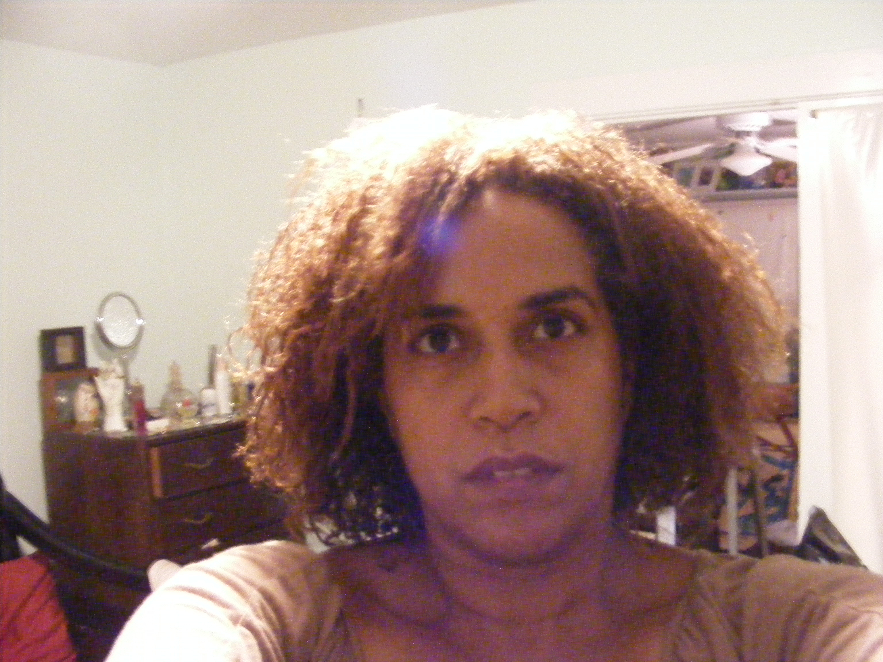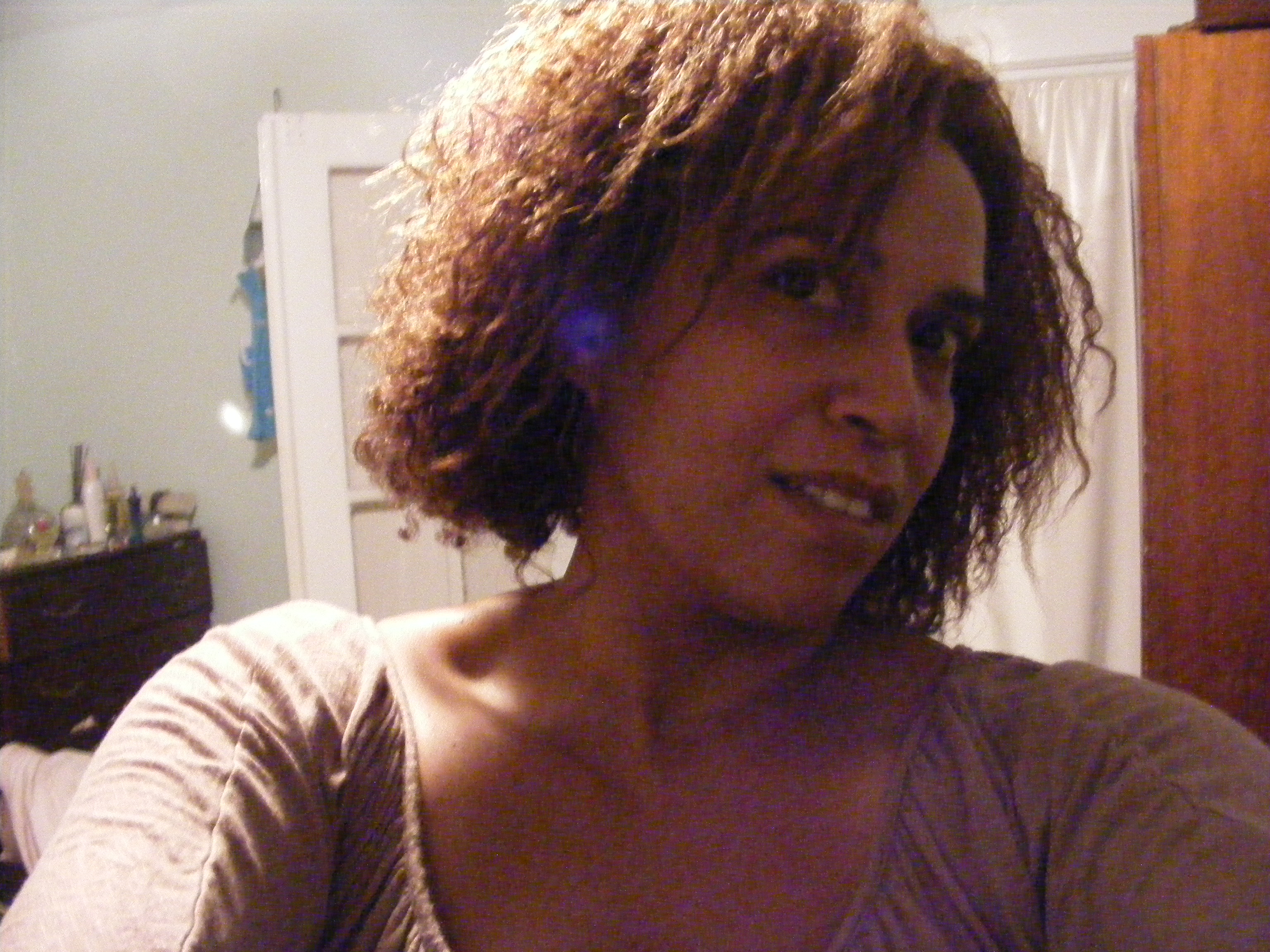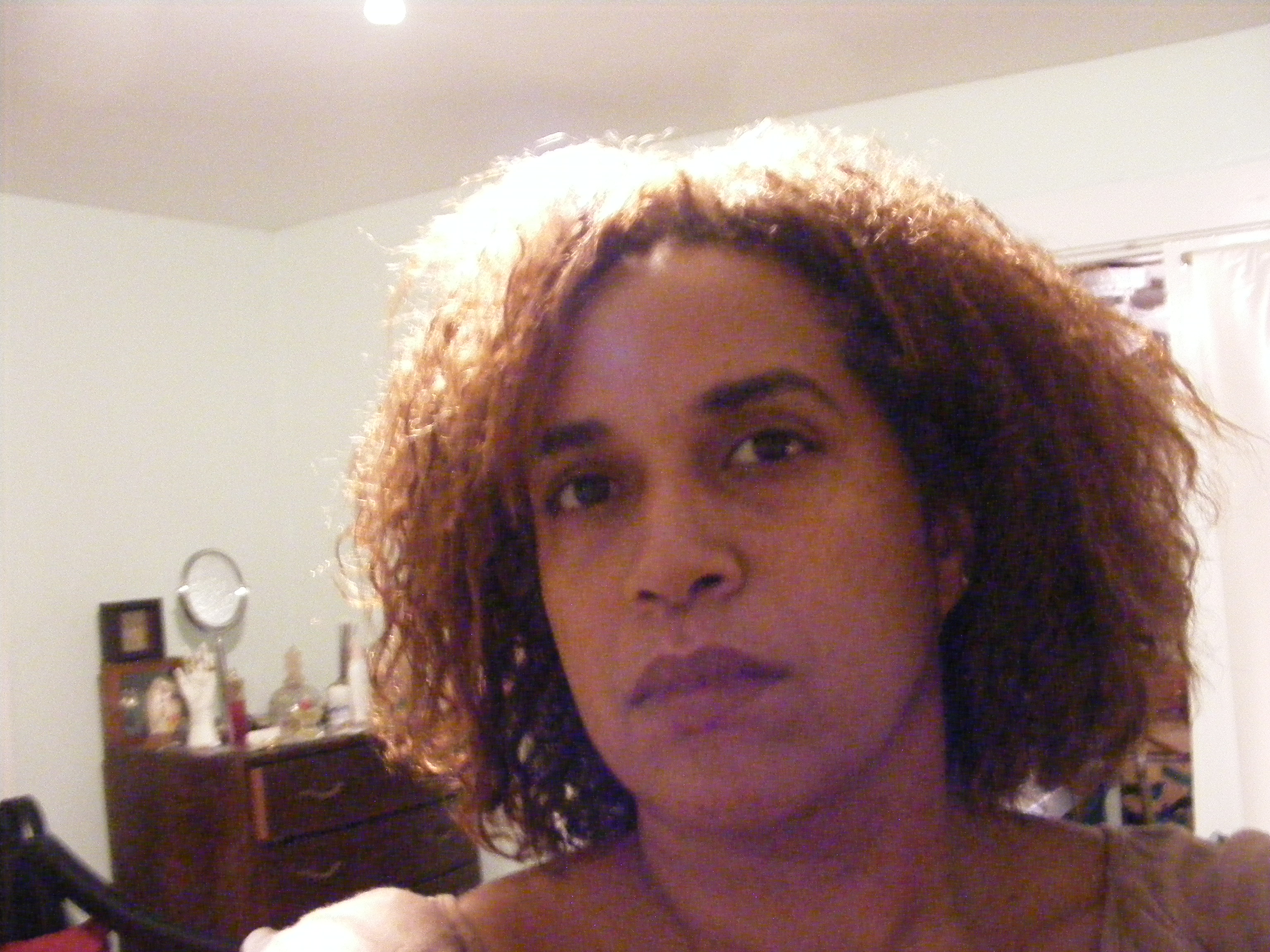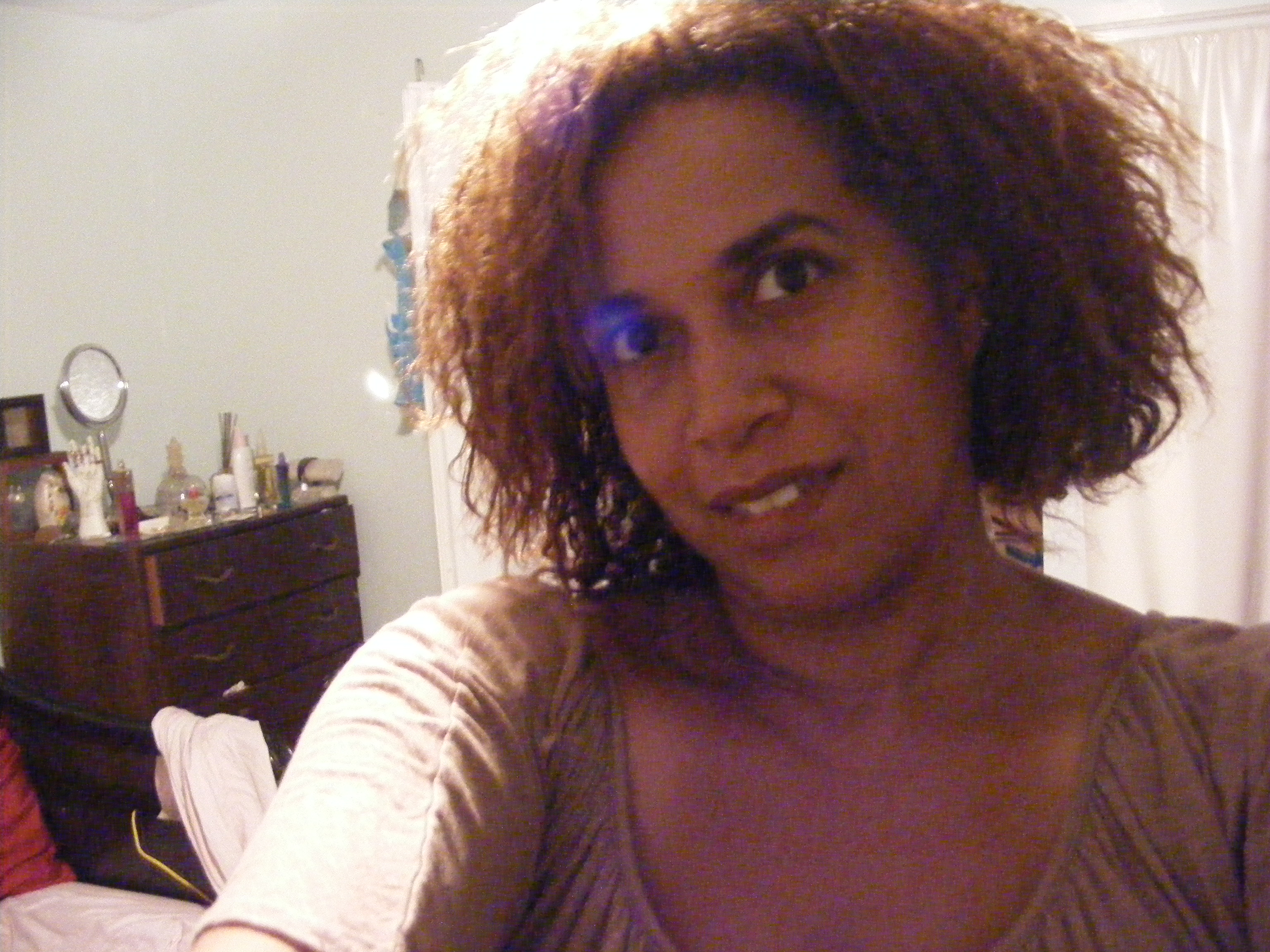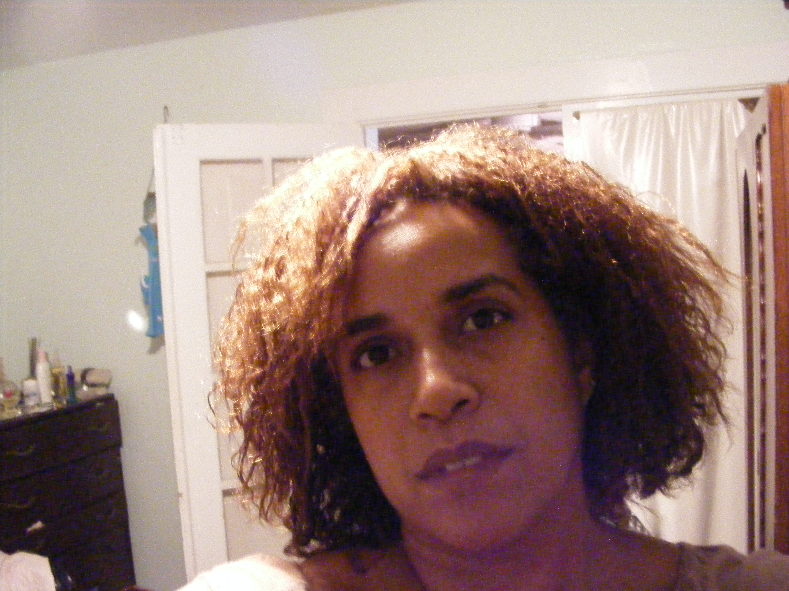 Well what to say. I’m in a little shock. I was taking some pictures t show the results of the hair products I am reviewing when I noticed some strange blobs in the picture with me. I be honest I had thrown the pictures in the recycle bin, not to happy with the hair. I noticed